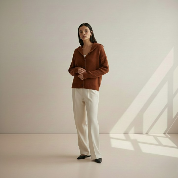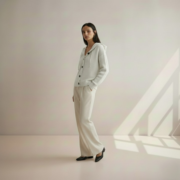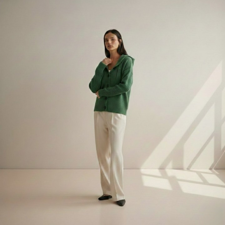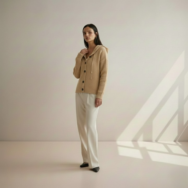 Dette Hushmode Hettevest er mer enn bare en vanlig cardigan – det er et plagg som gir varme og komfort på kjølige høst- og vinterdager. Den myke polyesterblandingen, den litt elastiske strukturen og det enkle A-linje-snittet sørger for at jakken sitter komfortabelt og følger bevegelsene dine uten å tynge deg ned. Med hette og enkle knapper kombinerer den elegant funksjon og stil.
