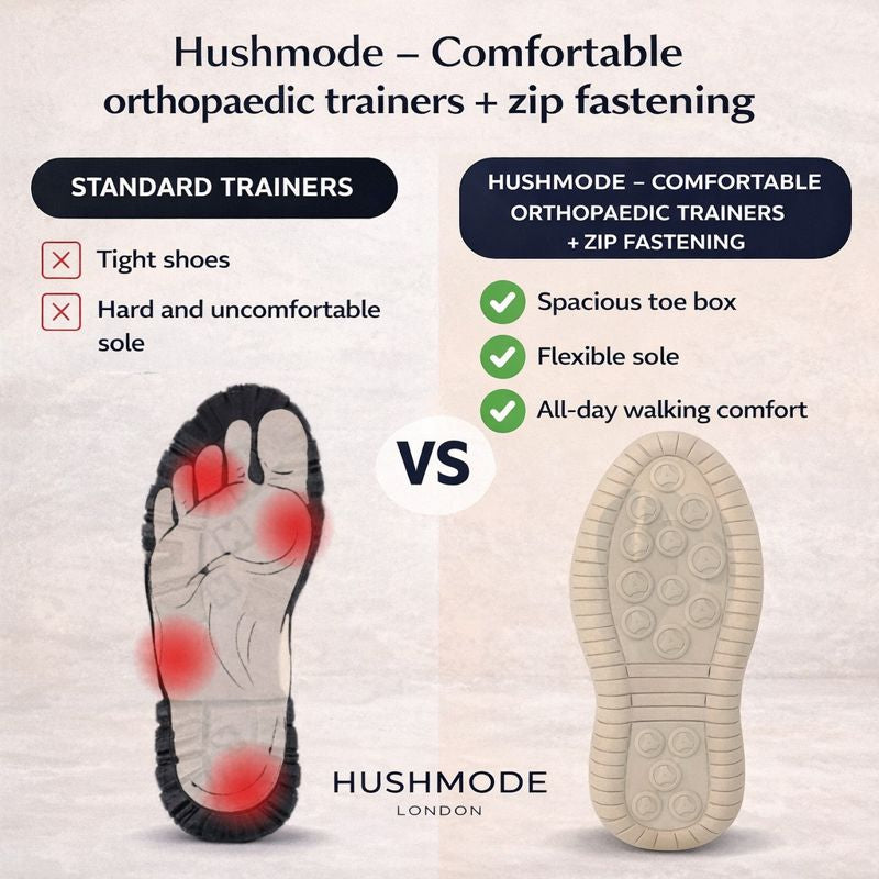Hushmode – Comfortable orthopaedic trainers + zip fastening